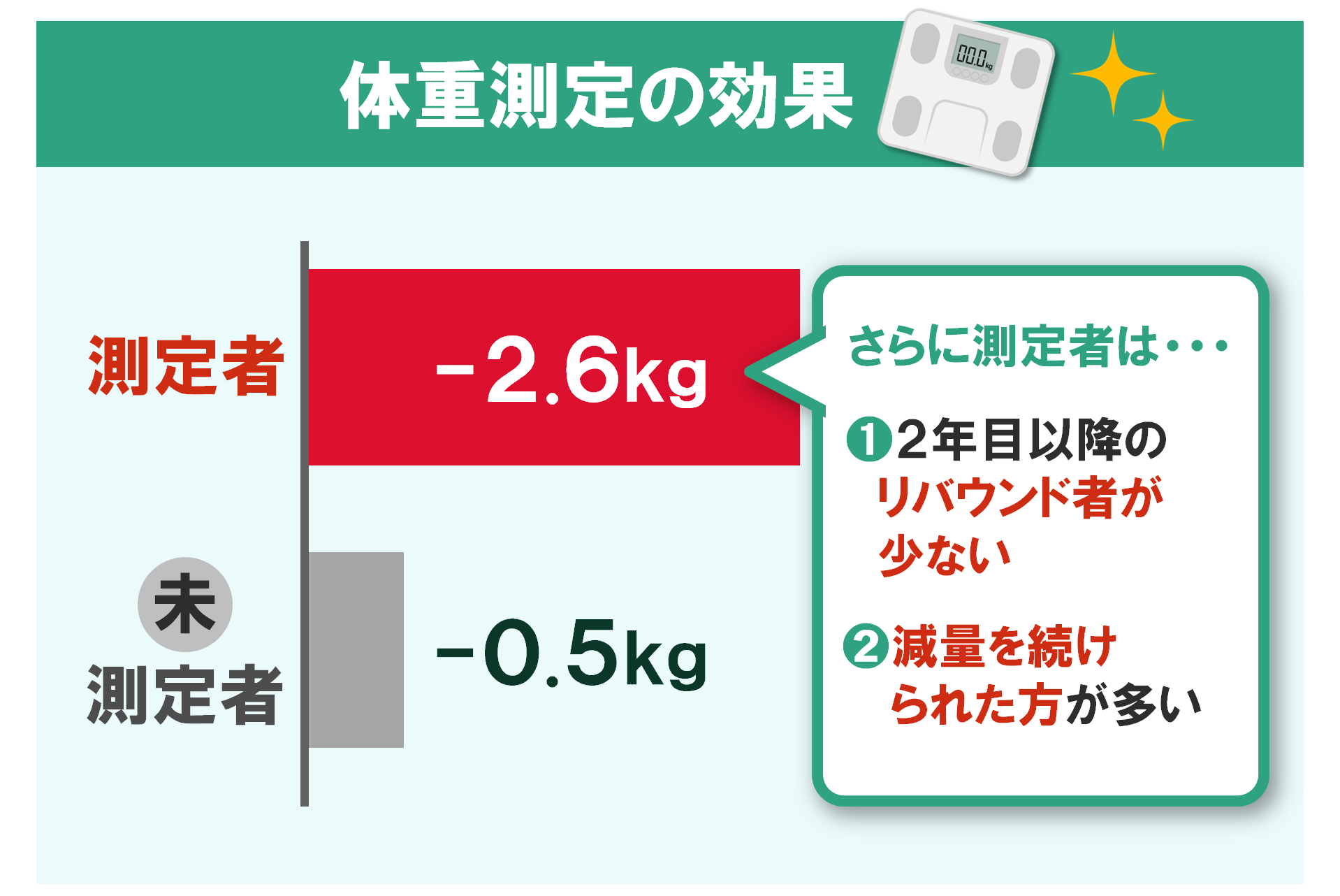 現状を正しく把握することで、「気づかぬうちに体重が増加するのを防ぐ効果」と「増加につながる習慣や痩せる習慣が分かる」ようになります。