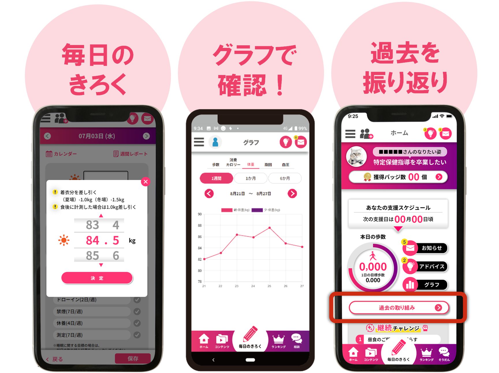 ファミリーページアプリを活用して日々の頑張りを見える化し、リバウンド防止に繋げていきたいですね。