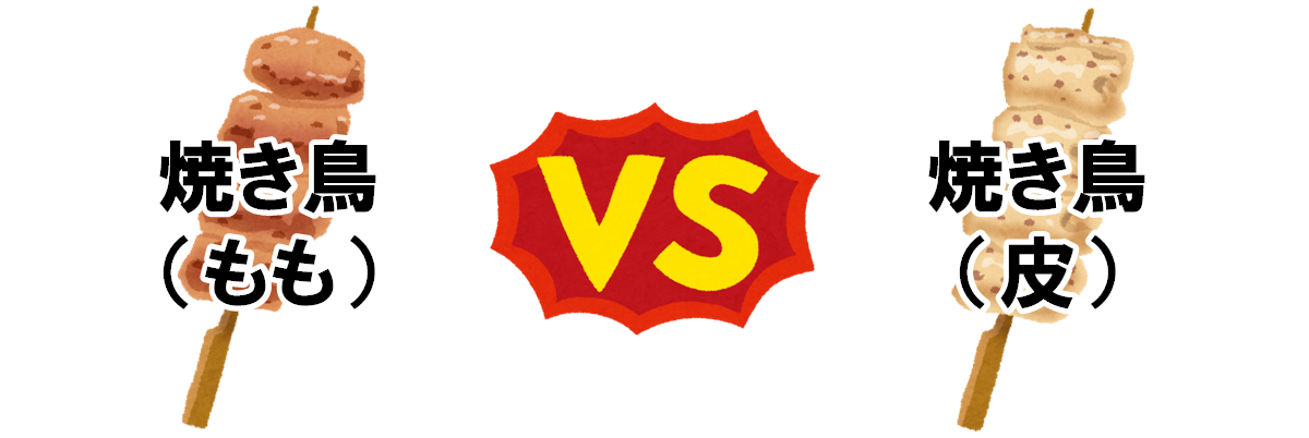 焼き鳥もも(皮つきタレ)1本 VS 焼き鳥皮(塩)1本