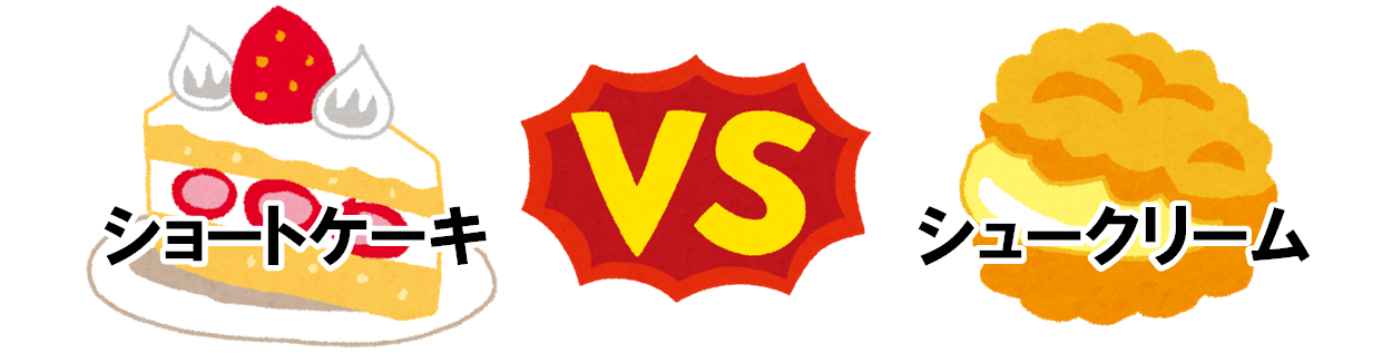 (ショートケーキ:314kcal、シュークリーム:134kcal)