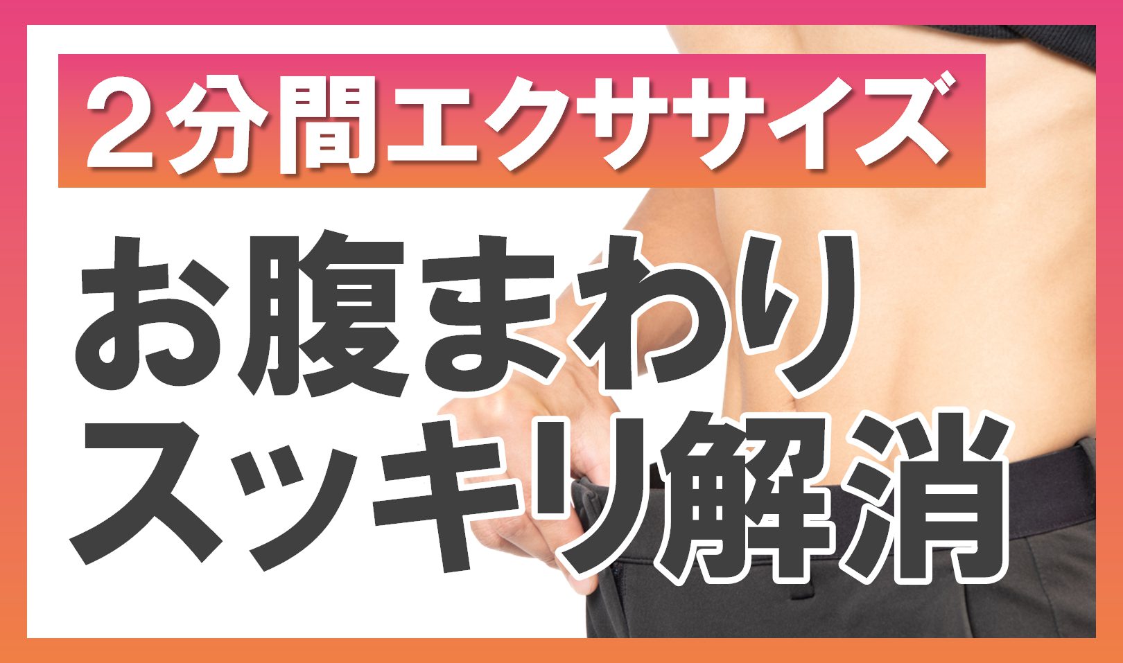 14191 【ピ】お腹まわりスッキリ解消 2分エクササイズ 15 歩数 2025.07.24 脇腹や下腹部の筋肉は、姿勢やボディラインを美しく保つカギ。 テレビを見ながらできる2分間エクササイズで、お腹まわりをスッキリ整えましょう! ※下記に該当する方は、必要に応じて医療機関を受診するなど、運動前に健康チェックを行い、安心・安全に運動を進めてください。 【血圧】診察時180/110mmHg以上、家庭測定時160/100mmHg以上 【血糖】空腹時血糖250㎎/dl以上 【その他】運動の影響で作用が強まる薬を服用中、運動で悪化する可能性がある整形外科的な不調がある このエクササイズで得られる効果 エクササイズの方法 1日2~3セット行うのがおすすめです。 動画でチェックしたい方はコチラ↓