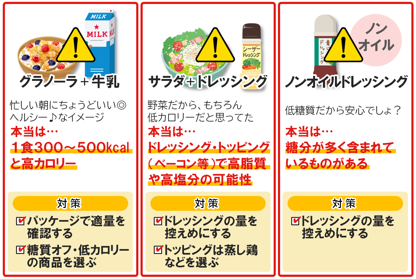 ➡“健康食品=低カロリー”ではないことに気づくことが大切