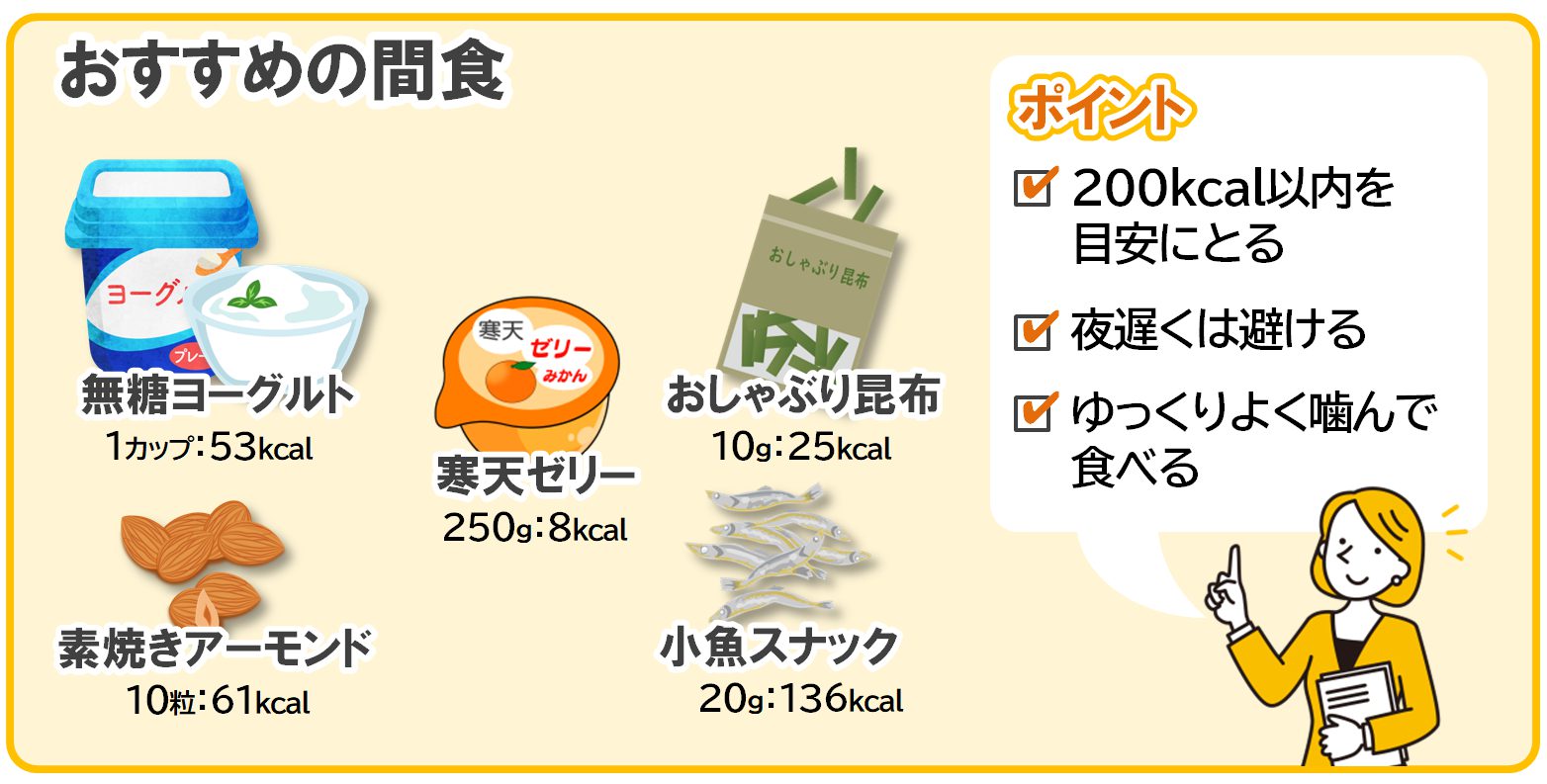 お腹が空いていて「どうしても何か食べたい」という時は、下記のような間食がおすすめです。