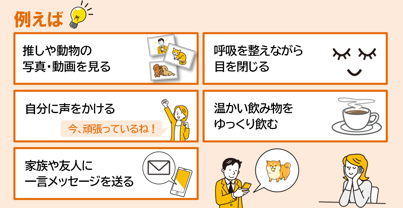 動物や“推し”の写真を見るなど『癒しの対象』に触れると、報酬が得られたと脳が錯覚し、オキシトシンやドーパミンなどの幸せホルモンが出て欲求が満たされた状態になります。