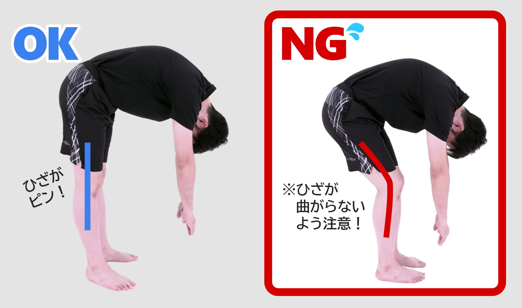 床に手がつかない場合、お尻やもも裏の筋肉が硬くなっている可能性があります。
