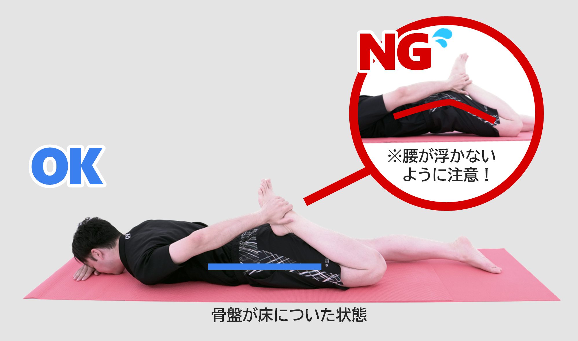 (骨盤が浮くと、柔軟性を正しく測ることができません。)