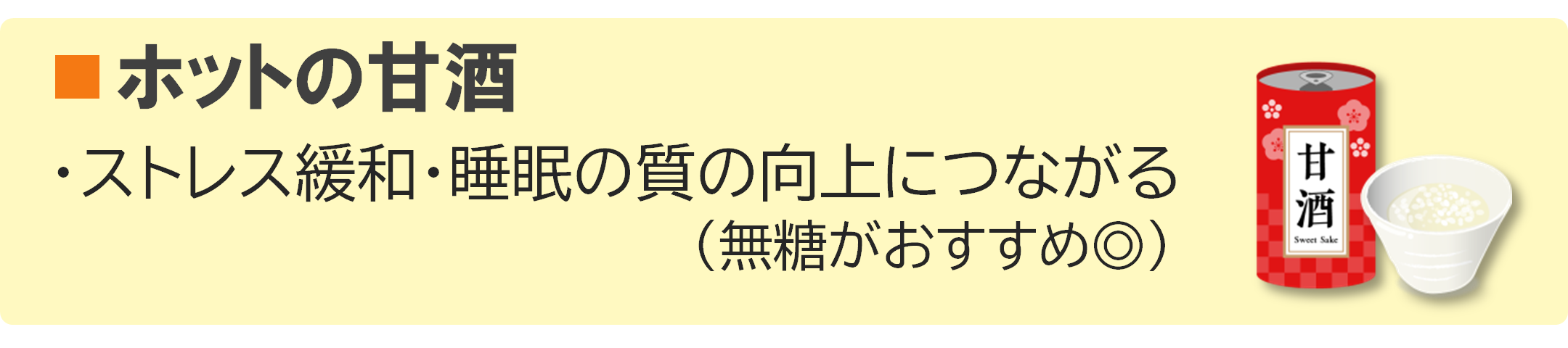 からだを内側から温めると、副交感神経が優位になり、リラックスしやすくなります。(快眠のためには、夏でも胃腸を冷やし過ぎないことが大切)