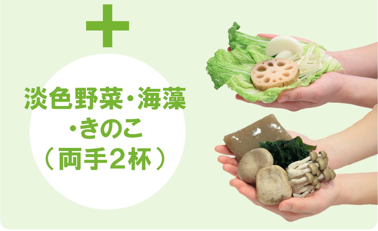 この間野菜・海藻・きのこをプラスすると、満足感がアップするだけでなく、ビタミンやミネラルが補え、「嬉しい変化」を後押しできます。