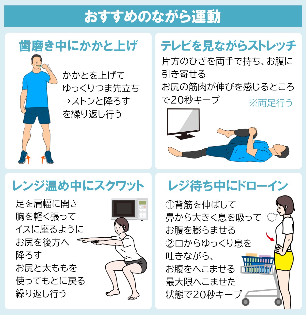 セルフケア2025年_8週目_俳句動画 2025年度 2025.12.24 生活のスキマ時間を利用した「ながら運動」をご紹介! まとまった運動の時間をとることが難しくても、少しの時間で体を動かす意識を持つことが大切です。 ながら運動の例