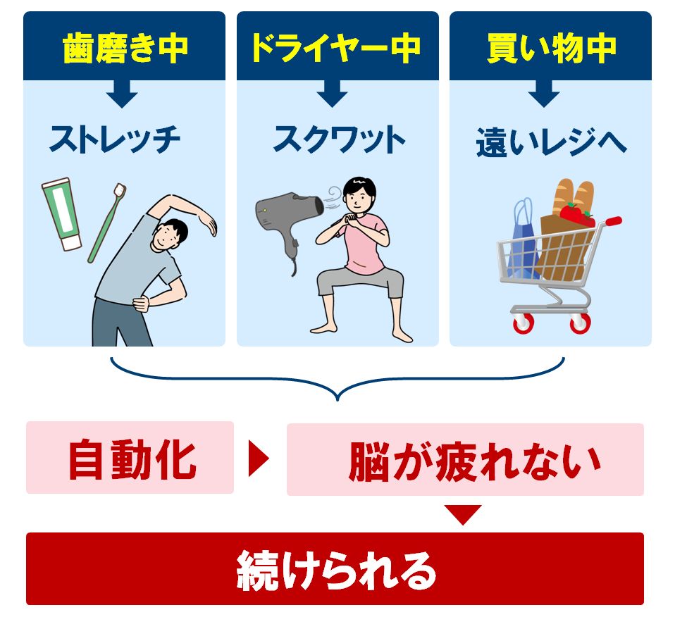 日常の動作に結び付けて “ルール化”すると継続しやすくなります。
