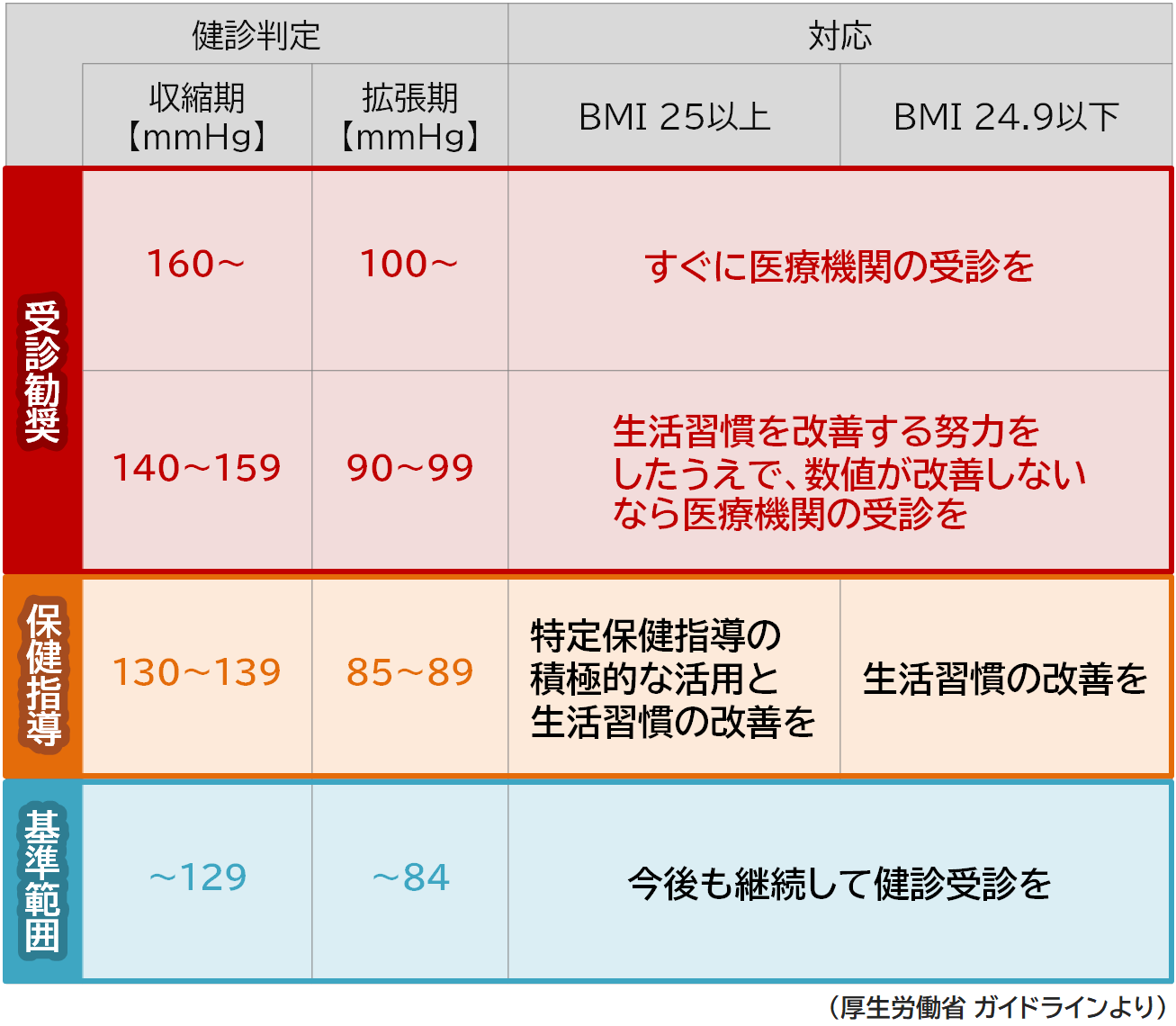 ※家庭で測定した場合は、血圧が135/85mmHg以上でも医療機関受診の対象となります。